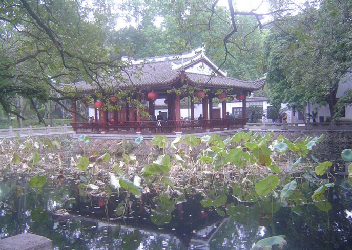 在開(kāi)化嶼東,系閩中詩(shī)人紀(jì)念堂,明正德年間(1506-1521年)詩(shī)人傅汝舟營(yíng)建。招詩(shī)友高濲等同來(lái)隱居。宛在堂木構(gòu)三楹,以詩(shī)名“孤山宛在水中央”為堂名。一時(shí)詩(shī)人云集,傳為佳話。清康熙四十一年(1702年)改建為湖心亭。乾隆十三年(1748年)黃任倡議復(fù)建,在堂中設(shè)立詩(shī)龕,作為福州詩(shī)壇同人吟詩(shī)聚會(huì)之地。后來(lái)堂為洪水沖毀。道光四年(1824年)重建。道光七年(1827年),林則徐丁父憂歸家,重浚西湖,借宛在堂為辦公場(chǎng)所。1914年,西湖辟為公園后,宛在堂修葺一新。此后,春秋皆有雅集,名人墨客薈萃吟詠。