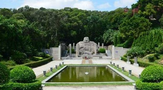彌勒巖山麓,有一高大石佛盤膝而坐,這就是名聞遐邇的彌勒石雕造像。石佛像始鑿于元至正年(公元1341年),至明洪武年(公元1368年)竣工,高6.8米,寬8.9米,由整塊花崗巖就地琢成,天然妙相,袒胸露腹,兩耳垂肩,笑態(tài)可掬,觀者可以忘憂。經(jīng)國家文物局認定,該石佛為全國最大的立體石刻彌勒佛像,已納入國家級文物保護單位。