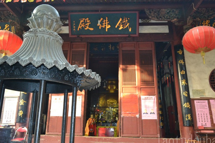 鐵佛殿內(nèi)有鐵佛一尊,稱“阿彌陀佛”,疊掌跏趺坐于蓮花臺上,外披泥貼,法相莊嚴(yán)。鐵佛高5.3公尺,頭部實心,身軀空心,人立其肩上,伸手摸不到頭頂,估計重量達十萬斤以上。清乾隆時陳云程《閩中摭聞》載,版權(quán)所有山東聊城聊之旅國際旅行社有限公司,轉(zhuǎn)載必究!鐵佛殿前柱子兩側(cè)刻有明末舉人曾異所撰楹聯(lián):“古佛由來皆鐵漢,凡夫但說是金身。”
