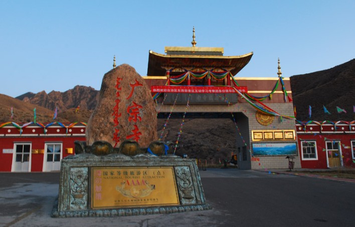 廣宗寺藏名“丹吉楞”,俗稱南寺。位于內(nèi)蒙古自治區(qū)阿拉善盟阿拉善左旗巴潤(rùn)別立境內(nèi),賀蘭山西麓的一個(gè)山谷之中,距巴彥浩特鎮(zhèn)東南23公里左右,該寺有6個(gè)屬?gòu)R,是原阿拉善八大寺中規(guī)模最大、名望最高的寺廟。由二十余座建筑群組成。其整個(gè)建筑氣勢(shì)宏偉,富麗堂皇。主要建筑有大雄寶殿、大經(jīng)堂、黃樓寺等。其中供奉西藏第六世達(dá)賴?yán)镞z體寶塔的大殿稱為“黃樓寺”。