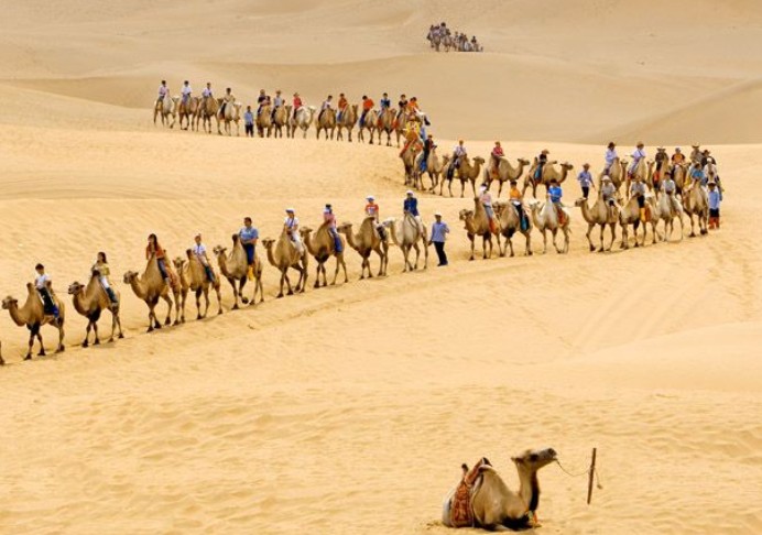 騰格里沙漠是中國(guó)第四大沙漠,也是現(xiàn)在流動(dòng)速度最快、周邊人口密度最大的沙漠,是沙塵暴的主要發(fā)源地之一。月亮湖是騰格里腹地的純天然湖泊,也是一個(gè)完全處于原始狀態(tài)的沙漠綠洲。月亮湖有三奇:一奇是形狀酷似中國(guó)地圖。站在高處沙丘一看,一幅完整的中國(guó)地圖展現(xiàn)在眼前,蘆葦?shù)姆植几菍⒏魇^(qū)一一標(biāo)明。二奇是湖水天然藥浴配方。面積三平方公里的湖水富含鉀鹽、錳鹽、少量硭硝、天然蘇打、天然堿、氧化鐵及其它微量元素,與國(guó)際保健機(jī)構(gòu)推薦藥浴配方極其相似。湖水極具生物凈化能力,能迅速改善,恢復(fù)自然原生態(tài)本色。三奇是千萬(wàn)年黑沙灘。版權(quán)所有山東聊城聊之旅國(guó)際旅行社有限公司,轉(zhuǎn)載必究!在長(zhǎng)達(dá)一公里、寬近百米的天然浴場(chǎng)沙灘,推開(kāi)其表層,下面是厚達(dá)十多米的純黑沙泥,其質(zhì)地遠(yuǎn)超死海的黑泥,更是天然泥療寶物。