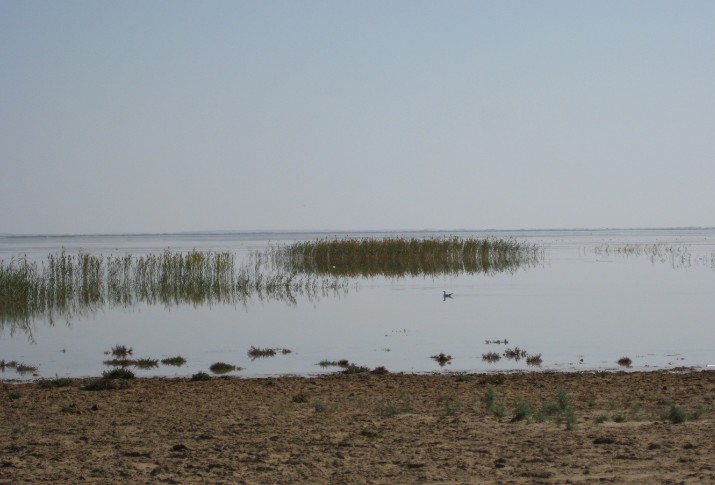 傍晚時分,科考隊驅車前往天鵝湖,據說那里是居延?,F存海子中湖水最多的地方,我們的心是沉重的,不知道這個有著如此優(yōu)美名字的湖泊會不會如我們想象中那么美好,是不是能讓我們稍微感受一下當年蘆葦叢生的景象呢?
