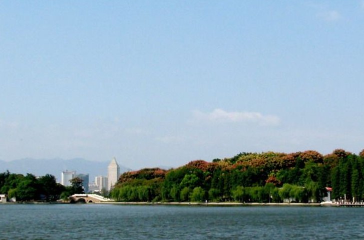 菱湖與蓮湖通連(中間是湖心路),在安慶市東北隅,方圓共八平方公里。舊時,以盛產(chǎn)菱藕和魚蝦著稱。原是一片天然湖泊,湖中有小島??滴鹾笃?,挖掘康熙河,后擴(kuò)建成游覽勝地,已有二百六十多年的歷史。舊有明史可法駐扎安慶時勒石“宜城天塹”石碑,現(xiàn)有清代大書法家鄧石如精美石刻。1921年在驚動全國的安徽省“六.二”學(xué)運中,與軍閥斗爭而犧牲的姜高琦、周肇基及周妻黃家馥合葬于湖內(nèi)東北隅,并建有紀(jì)念堂和血衣亭,為人憑吊。紀(jì)念堂壁上還刻了三人石像,每年六月二日要在亭中展覽姜烈士血衣。被毀于兵災(zāi)。現(xiàn)姜周烈士墓和血衣亭已修復(fù)。菱湖在歷史上是太平天國安慶保衛(wèi)戰(zhàn)的古水戰(zhàn)之地。1861年4月,英王陳玉成在第二次援救安慶時,率一萬余精兵從湖北趕到安慶集賢關(guān),在菱湖北岸修筑營壘十三座。城內(nèi)太平軍守將葉蕓來也出城在菱湖南岸修筑營壘五座,隔湖遙相呼應(yīng)。那時的菱湖東通石塘湖與破罡湖相連,可直達(dá)樅陽。