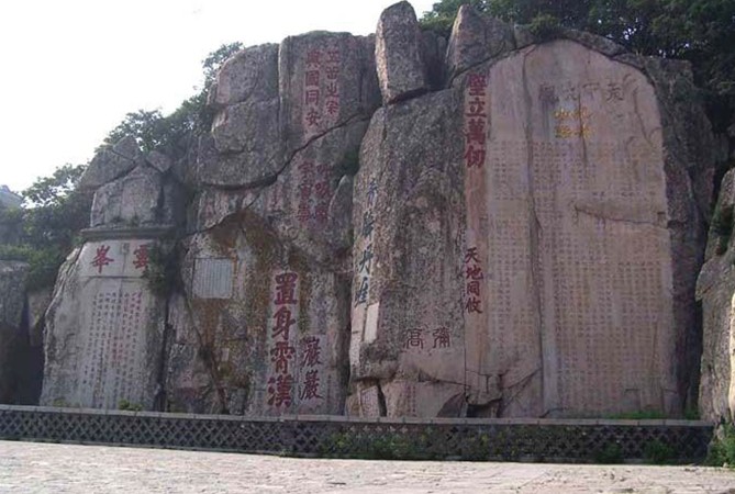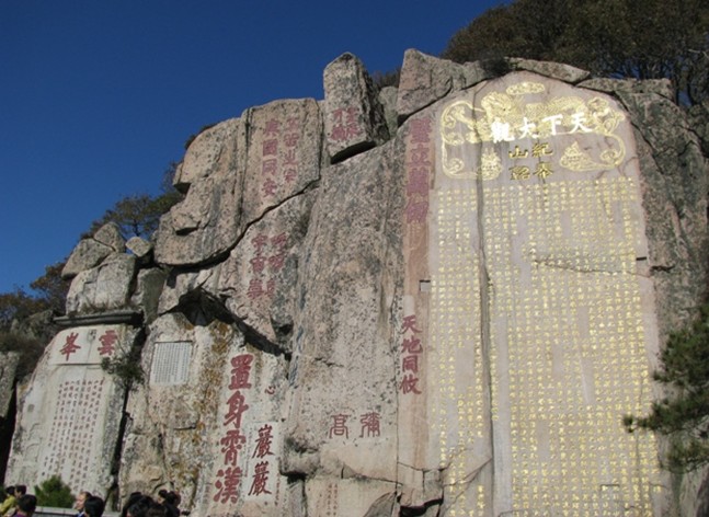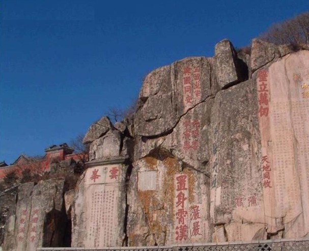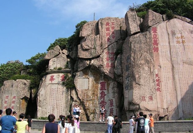 大觀峰和云峰上題刻遍布,版權(quán)所有山東聊城聊之旅國際旅行社有限公司,轉(zhuǎn)載必究!重重疊疊,能識(shí)者80余處。“天日蒼茫”、“呼吸宇宙”、“置身霄漢”、“青碧丹崖”等大字與《紀(jì)泰山銘》輝映;唐劉仁愿、宋趙明誠、元徐世隆、明朱衡、清阮元及施閏章等歷代名流題刻歷歷在目。