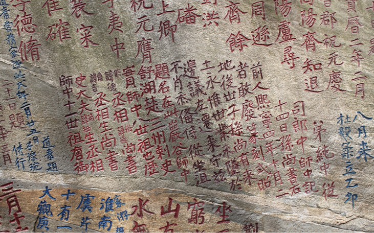 元代以后,眾多游客蜂擁山谷,也留下大量的文字石刻。除了式照唐宋時(shí)的題名、題詩(shī)以外,在石刻文字的內(nèi)容方面出現(xiàn)一些新的變化,比如出現(xiàn)了大量的用簡(jiǎn)短詞語(yǔ)贊嘆山、洞、泉、石景色的特點(diǎn)。同時(shí),石刻文字的體積增大,字徑往往有一、二尺之多,這都是過去所少見的。明代詩(shī)人、安慶知府胡纘宗在石牛上大書“石牛”2字,并刊刻了《山谷寺》詩(shī):“摩詩(shī)坐山谷,谷水身邊流,篆密龍蛇動(dòng),潭空牛女游”, 版權(quán)所有山東聊城聊之旅國(guó)際旅行社有限公司,轉(zhuǎn)載必究!此詩(shī)十分形象地描繪了石牛臨澗的景色,令人涌不絕口。胡纘宗還有“山谷”大字題刻,字徑2尺。其它像嘉靖時(shí)御史大夫李元陽(yáng)、成化時(shí)書法家袁慶祥等人的題名以及大量的“涪涪山谷”、“流云上流”、“天下奇觀”、“水光天色”、“龍門”、“獨(dú)醒處”、“安慶名山”、“幽思”等,都有一定的歷史研究與欣賞價(jià)值。從書法的角度看,這里的石刻包括有隸書、楷書、草書、篆書、行書等多種,每種書體中又富于變化,各具特色,基本上代表了唐代以來我國(guó)書法藝術(shù)發(fā)展演變的風(fēng)貌,是一處珍貴的書法藝術(shù)寶庫(kù)。