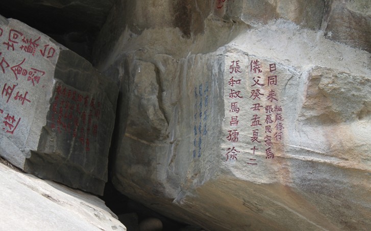山谷流泉中的3處年代最早的石刻都是唐代的,它們均分布在石牛古洞東壁懸崖上。其中2處是唐代著名散文家,哲學(xué)家李翱任舒州刺史時(shí)游覽山谷的題名。李翱字習(xí)之,隴西成紀(jì)(今甘肅秦安)人。貞元進(jìn)士,授校書郎,后任國(guó)事博士。元和十五年以后任廬州刺史、舒州刺史,長(zhǎng)慶二年(822年)壬寅游石牛古洞。所刻題名為“翱炅磷盤求壬寅年下元日習(xí)之書”、“挎儲(chǔ)弘運(yùn)上卿盤長(zhǎng)慶二年十月廿六日馀奉處交口”,均為真書,或橫排,或豎書直排。還有一處唐代13人題名石刻,系舒州刺史李德修于寶歷二年(826年)所刻。此刻楷書15行,上下豎書成行,字徑7厘米,書法遒勁渾厚。版權(quán)所有山東聊城聊之旅國(guó)際旅行社有限公司,轉(zhuǎn)載必究!據(jù)《唐書》載:李德修于寶歷時(shí)出任舒州,后任尚書,為唐代著名的文學(xué)家。