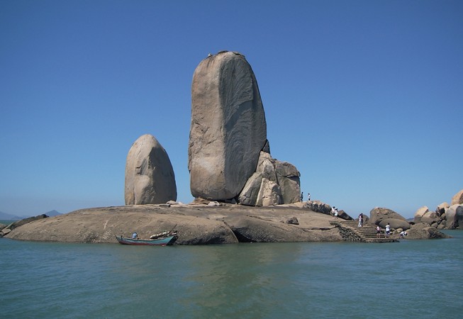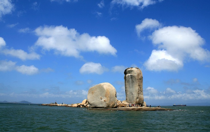 從看澳村岸邊坐渡船,十幾分鐘就到達(dá)礁石上,礁石底部是一組平坦完整的巖石。兩個(gè)石柱均由粗粒灰白色的花崗巖組成 東側(cè)的一個(gè)高達(dá)33米,胸寬9米,厚8米;西側(cè)的一個(gè)高17米,胸寬15米,厚8米。版權(quán)所有山東聊城聊之旅國際旅行社有限公司,轉(zhuǎn)載必究!兩個(gè)石柱的底部都是近似四方形體,直立在礁石上。據(jù)地質(zhì)學(xué)家考證是世界上最大的花崗巖球狀風(fēng)化海蝕柱。由于它的奇特壯觀,對游人有著強(qiáng)烈的震撼力和吸引力。建設(shè)部與中科院的專家稱之為:“壟斷性的世界級旅游資源。”明代旅行家陳第曾譽(yù)之為“天下奇觀”, 清朝女詩人林淑貞詩贊:“共說前朝帝子舟,雙帆偶趁此句留;料因濁世風(fēng)波險(xiǎn),一泊于今纜不收.