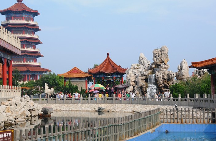 “望瀛樓”三個字是當代書壇泰斗啟功先生所題。據(jù)司馬遷《史記》記載,在東海之濱有三仙山,蓬萊、瀛洲、方丈,山上住著仙人,還有長生不老之藥,山上的亭臺樓閣均是黃金白玉所做,登此樓就可望到海上仙山。望瀛樓由六層組成,水上四層,水下兩層為海洋世界。海洋世界展示了幾百種珍奇的海洋生物,其中大海龜數(shù)十只,鯊魚有數(shù)百條,最大的有近3米長、重達300多斤,尤其是大鯊魚有了雅興,它格外慷慨的允許我們景區(qū)的潛水員和它手拉手一起遨游大海,令人嘆為觀止。