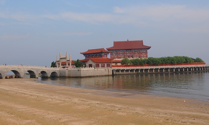 位于海水浴場東側(cè)海中,西與蓬萊遙遙相望的八仙渡???,是根據(jù)八仙過海神話傳說填海新建的景區(qū),填海面積3.3萬平方米,如果從空中俯視恰似丫腰葫蘆一般。游龍起伏脊的南部外墻,龍首位于正門兩側(cè),墻體內(nèi)側(cè)嵌有諸神如甲子神、日游神、夜游神及生肖圖案等漢白玉浮雕70余方。景區(qū)內(nèi)建有民族風格古典式建筑的大型八仙過海漢白玉照壁、流軒、挹清軒、八仙祠、三星殿、財神殿、放鶴亭、環(huán)形步廊等。
