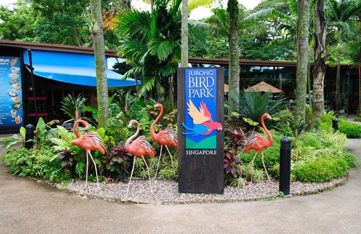 新加坡的裕廊飛禽園內(nèi)建有95個鳥舍、10個活動場所和6個池塘,養(yǎng)有380多種飛鳥,約4600只,其中有29種受威脅鳥類。園內(nèi)廣泛搜羅了東南亞及世界各地的鳥類,有來自西班牙的紅鶴、來自北京的知更鳥、來自幾內(nèi)亞的食火雞、來自巴西的三趾鴕鳥、有羽毛絢麗的熱帶鳥和來自冰天雪地的南極企鵝等,是個“花木四時茂,人來鳥不驚”的“鳥類王國”。園中修建有四通八達(dá)的柏油小徑,不愿步行者也可選游覽車。