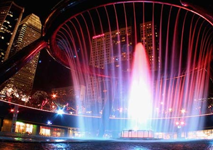 財(cái)富噴泉是新加坡的標(biāo)志建筑之一,位于金融中心,只在特定的時(shí)間開放,噴泉周圍地面有12生肖圖案,據(jù)說繞著噴泉走三圈會(huì)帶來財(cái)氣。白天「財(cái)富之泉」不噴水時(shí),就會(huì)開放給民眾免費(fèi)進(jìn)到噴泉中央?yún)⒂^。這座噴泉耗資新加坡幣600萬元建成。每晚8點(diǎn)開始,『財(cái)富之泉』均有一場(chǎng)多媒體噴泉秀,有興趣的民眾不妨前往觀賞,當(dāng)燈光與水幕交織出的神秘光彩煞是好看!