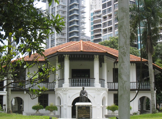 孫中山南洋紀念館前稱晚晴園,是同盟會南洋支部舊址,保存了孫中山先生在新加坡時的許多重要史料。晚晴園原由一位張姓富商修建,供同盟會南洋支部使用。孫中山從1905年開始,數(shù)次訪問新加坡,把此地做為中國同盟會南洋支部的活動據(jù)點。1966年3月,新加坡中華總商會將幾度易手的晚明園整修后重新開放,供人憑吊一代偉人孫中山。紀念館的正面,擺放著中山先生的座像。