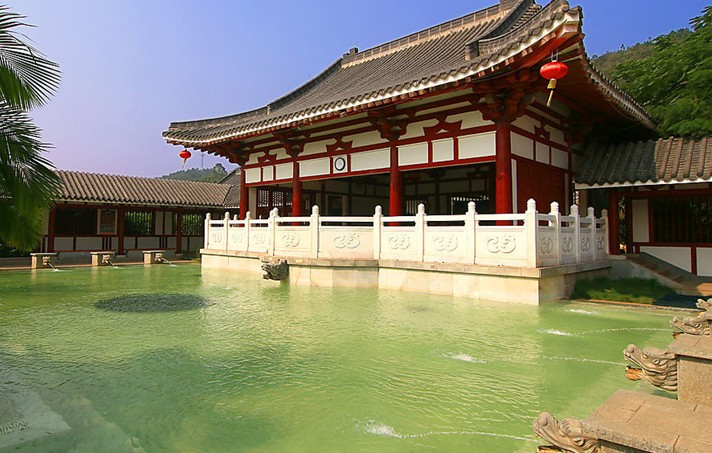 九龍池位于玉溪市州城西北10公里奇黎山下的九龍池,又名奇黎溪, 是當(dāng)?shù)刂募丫皠俚刂?。位于玉溪市州城西?0公里奇黎山下的九龍池,又名奇黎溪, 是當(dāng)?shù)刂募丫皠俚刂弧?據(jù)《重修九龍池碑記》載, 寺廟初創(chuàng)于清朝之前, 幾經(jīng)擴(kuò)建,到公元1729年(雍正七年),又“新作石橋,長(zhǎng)虹臥波,幾于騰空直上。繼修大寺閣,燃然一新,儼若普陀”。
