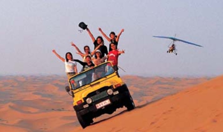 特別是沙海沖浪,是游人進(jìn)入月亮湖景區(qū)所必須嘗試和接受挑戰(zhàn)的項(xiàng)目,也是驚險(xiǎn)和極富刺激的項(xiàng)目。在沙海沖浪中,司機(jī)以其嫻熟的車技將越野車從一個(gè)沙丘頂端沖向另一個(gè)沙丘的頂端,在頂端——深谷——頂端那瀚海沙浪的大起大落中讓游人感受疾速升降運(yùn)動(dòng)所帶來的那種無法自控的驚險(xiǎn)刺激。在飛馳的車?yán)?,生命?huì)徹底得到放松,人從心靈深處會(huì)感到擁抱大自然的那種快樂和欣慰。這里已成為現(xiàn)代都市人體驗(yàn)原生態(tài)大自然,感悟生命,洗心靜思的心靈休閑勝地。