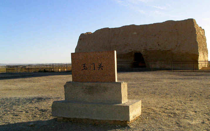 玉門關,始置于漢武帝開通西域道路、設置河西四郡之時,因西域輸入玉石時取道于此而得名。漢時為通往西域各地的門戶,故址在今甘肅敦煌西北小方盤城。元鼎或元封中(公元前116一前105年)修筑酒泉至玉門間的長城,玉門關當隨之設立。據《漢書•地理志》,玉門關與另一重要關隘陽關,均位于敦煌郡龍勒縣境,皆為都尉治所,為重要的屯兵之地。當時中原與西域交通莫不取道兩關,曾是漢代時期重要的軍事關隘和絲路交通要道。