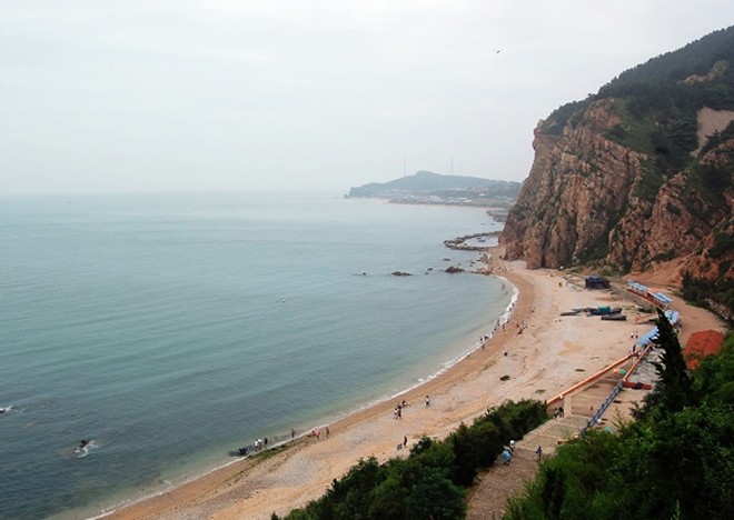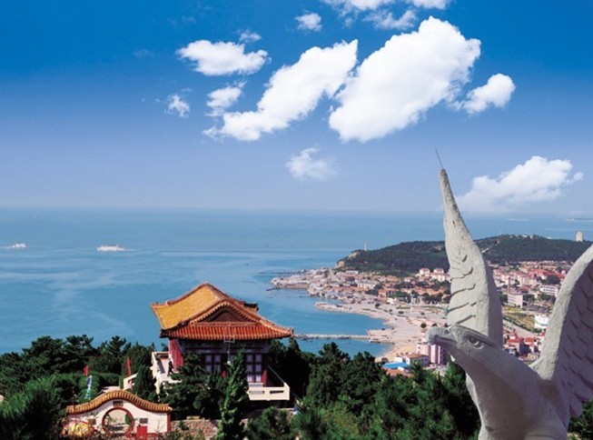 烽山為長島縣城的至高點,明代抗倭名將戚繼光為防海上倭寇入侵,在山東建峰火臺,故而得名。現(xiàn)在來島的游人習(xí)慣叫它鷹山,因為山頂?shù)袼芰艘恢恍埴?,遙遙望去,栩栩如生,展翅欲飛,象征改革時代騰飛的長島。