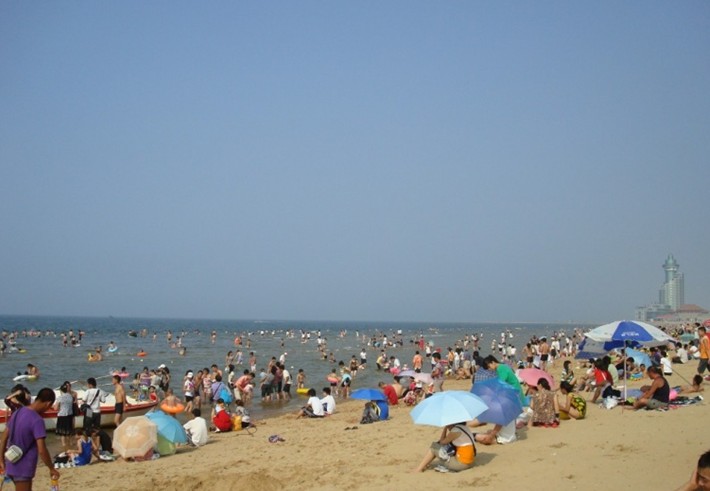 位于煙臺(tái)經(jīng)濟(jì)技術(shù)開發(fā)區(qū)金沙灘海濱公園北部的素有“北方第一海灘”之稱的萬米海水浴場,沿海岸線綿延,坡緩水清,沙質(zhì)細(xì)柔,夏季中午海水水溫為25攝氏度左右,是我國最優(yōu)良的天然海水浴場之一。這里有風(fēng)和日麗,景色秀美的春天;水平浪靜,海似錦緞的夏日;波涌浪翻,玉珠飛濺的秋天;激浪排空,蔚為壯觀的冬季,構(gòu)成了一幅四季色彩分明的美麗圖畫。6座沿海濱一線展開的雕塑仿佛點(diǎn)睛之筆,更增添了海的韻味。