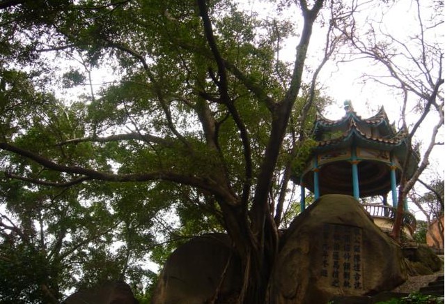 先薯亭下有一條小路,兩石夾峙于路兩邊,叫“天門”。先薯亭下天門中的一塊夾石極似鯨魚,稱“鯨魚石”.版權所有山東聊城聊之旅國際旅行社有限公司,轉載必究!過天門巖壁上有清代畫家廣陵禹隸書“飲嵐”。明朝初年在這里種植“長頸鹿榕”,如今盤石而生,根粗葉茂,酷似長頸鹿翹首南天。
