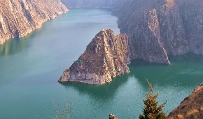 在甘肅永靖縣境內(nèi)。黃河兩岸崇山峻嶺, 形成峽谷。1974年建成具有發(fā)電、防洪、灌溉、養(yǎng)殖、航運等功能的綜合性水利樞紐工程。一條長840米、高147米的巨大攔河壩把黃河攔腰斬斷, 形成了劉家峽水庫(庫容57億立方米,水域面積130平方公里),大壩下安裝了五臺國產(chǎn)大型水輪發(fā)電機組, 版權所有山東聊城聊之旅國際旅行社有限公司,轉(zhuǎn)載必究! 成了總裝機容量122.5萬千瓦年發(fā)電量57億度的黃河上游第一座水力發(fā)電站。