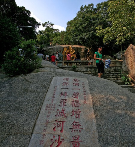 南普陀寺是廈門(mén)著名古剎,居于鷺島名山五老峰前,背依秀奇群峰,面臨碧澄海港,風(fēng)景絕佳。始建于唐代,為閩南佛教勝地之一。寺內(nèi)天王殿、大雄寶殿、大悲殿建筑精美,雄偉宏麗,各殿供奉彌勒、三世尊佛等。藏經(jīng)閣珍藏佛教文物豐富多彩,有經(jīng)典、佛像、宋代銅鐘、古書(shū)等,明萬(wàn)歷年間血書(shū)《妙法蓮花經(jīng)》和何朝宗名作白瓷觀音等最為名貴。寺宇周?chē)A舯姸囝}刻,著名的有明萬(wàn)歷陳第、沈有容題名石刻和清乾隆御制碑。寺后崖壁“佛”字石刻,高一丈四尺,寬一丈。寺后五峰屏立,松竹翠郁,巖壑幽美,號(hào)“五老凌霄”,是廈門(mén)大八景之一。