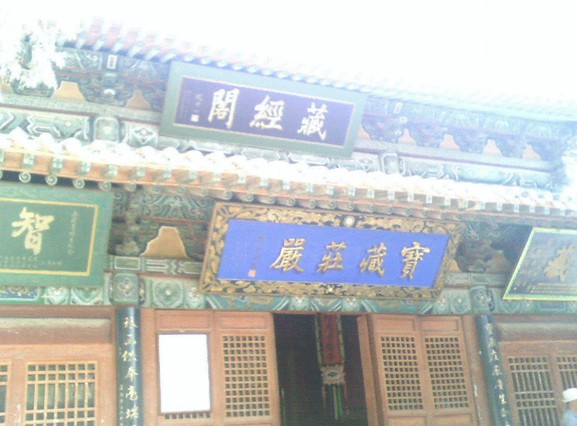 海藏寺坐北向南,寺前湖光山色,四周農(nóng)田村舍環(huán)抱,寺內(nèi)蒼松古柏蔽日參天。主要建筑,山門前屹立著一座四柱三間的木構(gòu)牌樓,頗具民族建筑藝術(shù)特色,上書“海藏禪林”四個大字。昔日,每當(dāng)夏秋之際旭日東升,晨光透過茂密的樹林,遠遠就會看到牌樓東南檐下,一縷青煙,裊裊上升,若有若無,時隱時現(xiàn),俗稱:“海藏?zé)熈?rdquo;和“日出寒煙”等,景色神奇美妙。進入山門,迎面是雙層飛檐的大雄寶殿,繞郎回環(huán)巍峨莊嚴,經(jīng)過地藏殿,拾級而上,穿過過殿,登上靈鈞臺,俯視四周,海藏美景盡收眼底。據(jù)清光緒三十四年《晉筑靈鈞臺》碑記,東晉明帝太寧中涼王張茂建筑古臺可證。臺上無量殿是海藏寺最早的主體建筑,它不僅建筑本身有重要的科學(xué)藝術(shù)價值,同時也因殿內(nèi)藏有六千八百二十卷明版藏經(jīng),(現(xiàn)存于武威博物館)。無量殿又名藏經(jīng)閣而聞名遐邇。殿內(nèi)十六個描金大柱上均書立粉對聯(lián),筆力渾茁雄健,文詞清麗,如:“闕影身池塘,足下龜蛇低戲水;臺靈高坎位,座旁旗劍上凌云。”深刻描繪了靈鈞臺的壯麗景色。