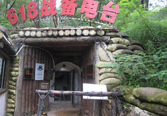 618戰(zhàn)備電臺(tái),原為山東人民廣播電臺(tái)戰(zhàn)備臺(tái),是華東地區(qū)規(guī)模最大、保存最完整的一處戰(zhàn)備電臺(tái)。它是二十世紀(jì)六十年代為適應(yīng)國(guó)防需要,由時(shí)任濟(jì)南軍區(qū)司令員的楊德志將軍親自選址興建的,位于山東省淄博市沂源縣魯村鎮(zhèn)峨峪村北山中。海拔高度400米,相對(duì)高度200米,占地面積229畝,發(fā)射功率50千瓦,能夠覆蓋淄博、臨沂、濰坊、泰安等13個(gè)市縣。電臺(tái)機(jī)房設(shè)在山中坑道內(nèi),坑道總長(zhǎng)470米,施工面積2820平方米。