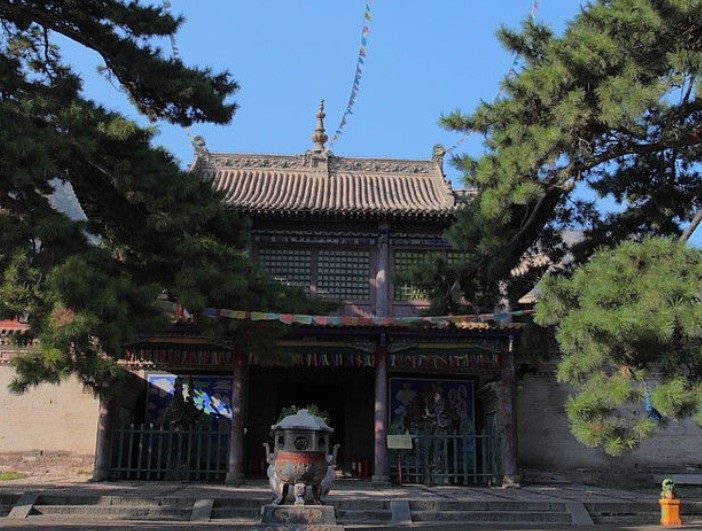 “玻璃殿”為3層樓房,是阿拉坦汗和三娘子接受朝拜的地方。在東北方,有座重歇山頂式建筑,這就是“太后廟”,亦稱“三娘子廟”。