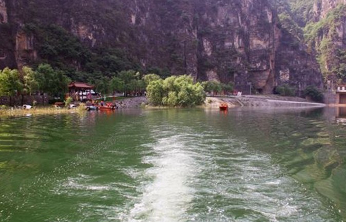 泉河頭風(fēng)景區(qū),主要有上龍灣、 泉河頭風(fēng)景區(qū),主要有上龍灣、下龍灣泉群和青龍山古建筑群組成。“半畝方塘碧澗深,高山流水澈清音”。乍離水源緊缺的博山城,見到這里水氣飛霧,泉瀑涌流,游人格外興奮。泉河一帶,寬闊的水面上輝映著青龍山的倒映,水清見底,魚游淺灘,鵝鴨嬉戲,令人耳目一新。兩處泉源——上龍灣和下龍灣,被疏浚整修成十幾米見方的深水池,四周石柱回護(hù),池深水綠,泉眼密布,噴玉吐珠,常年不竭,且水溫常年保持在15℃左右,適宜養(yǎng)殖熱帶魚類。市、區(qū)水利部門在此投資建成數(shù)畝魚池,飼養(yǎng)從國外引進(jìn)的虹鱒魚。河畔的銀灰色建筑是新近落成的虹鱒魚酒樓。人們在游山玩水之余,至此品嘗魚鮮,別有一番情趣。從下龍灣沿山路盤旋而上,可見一組古建筑鑲嵌在懸崖峭壁之間,掩映在綠樹繁花之中。頭一座是舊時(shí)人們祈禱風(fēng)調(diào)雨順、五谷豐登的龍王廟。再拾級東攀,至山門——一座磚砌單檐三門牌樓,高寬約6米,凌空矗立,上書“清音萬古”。進(jìn)牌樓,迎面是幢規(guī)模較大的殿宇——三宮殿。據(jù)殿前石壁透龍碑記載,此殿系明萬歷十二年修建,距今已400余年。這“透龍碑”浮雕石龍,光滑如鏡。當(dāng)?shù)赜惺酌裰{:“青龍山前一條河,既有鴛鴦又有鵝,抬頭望見透龍碑,一眼看到太陽窩”。傳說人摸石碑可逢兇化吉。 晚霞夕映,碑端能照見高聳的無影山。繞過三宮殿,穿過石砌洞道,來到這組古建筑的中心——涼亭。該亭四角八柱,半空飛檐,雄踞山腰。石柱上刻有“炎天無暑氣,清夜有泉聲”的詩聯(lián)。登亭遠(yuǎn)眺,版權(quán)所有山東聊城聊之旅國際旅行社有限公司,轉(zhuǎn)載必究!田園阡陌,歷歷在目,淄水長流,盡收眼底。從涼亭上攀,則是一依山傍崖的雙層閣樓,上層是白衣閣,底層過一拱門便是青龍洞,這洞外闊內(nèi)窄,深邃曲折,怪石嶙峋。白衣閣東側(cè),也是一雙層建筑,圓柱飛檐,上為觀音殿,下為道房,其間亦有洞口通后山。這組古建筑依勢構(gòu)造,錯落有致,布局精巧。這些景觀和建筑是泉河附近群眾集資修復(fù)的,基本保持了明清建筑的風(fēng)格。