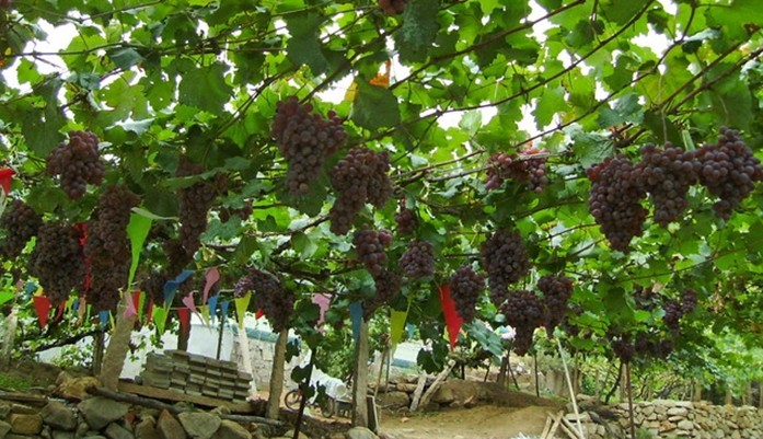 風(fēng)景秀麗的葡萄溝,以盛產(chǎn)優(yōu)質(zhì)葡萄而聞名中外。1994年溝里種植葡萄315.6 公頃,生產(chǎn)鮮葡萄8601噸。這里主要種植無(wú)核白葡萄,還有馬奶子、紅葡萄、喀什哈爾、日加干、瑣瑣等 13個(gè)品種。其果實(shí)呈球形、卵形、橢園形等,有的葡萄晶瑩如珍珠,有的鮮艷似瑪瑙,而有的綠若翡翠。版權(quán)所有山東聊城聊之旅國(guó)際旅行社有限公司,轉(zhuǎn)載必究!那五光十色、翠綠欲滴的鮮葡萄,令人垂涎不止。尤其是這里生產(chǎn)的無(wú)核白葡萄、皮薄、肉嫩、多汁、味美,營(yíng)養(yǎng)豐富,素有“珍珠”美稱,其含糖量高達(dá)20-24%,超過(guò)美國(guó)加利福尼亞州的葡萄,居世界之冠。用無(wú)核白鮮葡萄晾制的葡萄干,含糖量高達(dá)60%,被人們視為葡萄中的珍品。