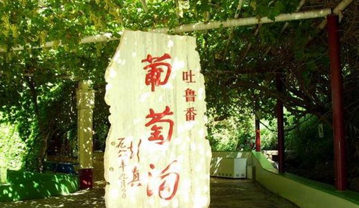 吐魯番的夏天可是出了名的熱,8月基本上每天的氣溫都在42℃以上,火焰山的地面溫度可以達(dá)到80至90℃,故有“沙窩里煮雞蛋之稱”。但在葡萄溝溪流兩側(cè),葡萄架遍布,葡萄藤蔓層層疊疊,綠意蔥蔥。四周是茂密的白楊林,花草果樹(shù)點(diǎn)綴其間,農(nóng)家村舍錯(cuò)落有致地排列在緩坡上。葡萄溝,是火洲的“桃花源”。溝里四處都有令人向往的地方。一是葡萄溝接待站。這是為中外賓客開(kāi)辟的游覽場(chǎng)所,依山旁水,安靜、幽雅,景物天成,數(shù)條葡萄長(zhǎng)廊深邃、幽靜,有的游客信步葡萄架下,仰首盡情觀嘗珍珠般的葡萄,有的游人坐在葡萄架下品嘗鮮葡萄。長(zhǎng)廊盡頭碑石上葡萄溝三個(gè)鮮紅大字,格外引人注目,游人爭(zhēng)先恐后在此照相留念。園內(nèi)有民族風(fēng)味的食堂,有賣工藝品的蒙古包,還有劃船游玩的地方。二是葡萄山莊。這是葡萄溝里設(shè)備齊全、級(jí)別較高的度假村。這里有高檔次床位120個(gè),有供120人就餐的飯廳,還有卡拉 ok廳、游泳池等。三是吐魯番葡萄展覽館。四是吐魯番維吾爾族民居民俗館。五是葡萄鄉(xiāng)的度假村。