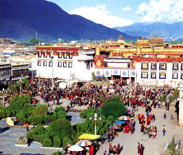 “拉薩”在藏語中為“圣地”或“佛地”之意,長期以來就是西藏政治、經(jīng)濟(jì)、文化、宗教的中心,金碧輝煌、雄偉壯麗的布達(dá)拉宮,是至高無上政教合一政權(quán)的象征。早在七世紀(jì),松贊干布兼并鄰近部落、統(tǒng)一西藏后,就從雅隆遷都邏姿(即今拉薩),建立吐蕃王朝。