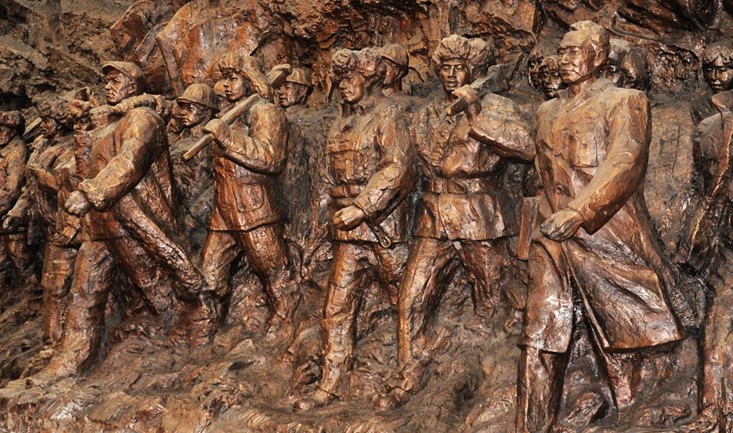 在建筑和布展上,鐵人王進(jìn)喜紀(jì)念館均體現(xiàn)了“厚重、大氣、質(zhì)樸、昂揚(yáng)、粗獷、豪放”的風(fēng)格。走進(jìn)紀(jì)念館序廳,版權(quán)所有山東聊城聊之旅國際旅行社有限公司,轉(zhuǎn)載必究!迎面是一組國內(nèi)最大的鑄銅雕像《石油魂》,它氣勢(shì)磅礴,真實(shí)生動(dòng)地刻畫了以鐵人王進(jìn)喜為代表的英雄群體形象。