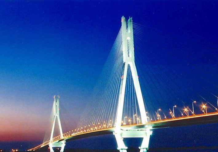 南京長(zhǎng)江二橋是國(guó)家“九五”重點(diǎn)建設(shè)項(xiàng)目,位于現(xiàn)南京長(zhǎng)江大橋下游11公里處,全長(zhǎng)21.337公里,由南、北汊大橋和南岸、八卦洲及北岸引線組成。其中:南汊大橋?yàn)殇撓淞盒崩瓨颍瑯蜷L(zhǎng)2938米,版權(quán)所有山東聊城聊之旅國(guó)際旅行社有限公司,轉(zhuǎn)載必究!主跨為628米,該跨徑目前居同類橋型中“國(guó)內(nèi)第一,世界第三”;北汊大橋?yàn)殇摻罨炷令A(yù)應(yīng)力連續(xù)箱梁橋,橋長(zhǎng)2172米,主跨為3×165米,該跨徑在國(guó)內(nèi)亦居領(lǐng)先。全線還設(shè)有4座互通立交、4座特大橋、6座大橋。設(shè)計(jì)標(biāo)準(zhǔn):雙向六車(chē)道高速公路;設(shè)計(jì)速度:100公里/小時(shí);設(shè)計(jì)荷載:汽——超20,掛——120;路基寬33.5米,橋面寬32米(不含斜拉索錨固區(qū))。全線設(shè)有監(jiān)控、通訊、收費(fèi)、照明、動(dòng)靜態(tài)稱重等系統(tǒng),并設(shè)有南汊主橋景觀照明,南、北汊橋公園和八卦洲服務(wù)區(qū)。