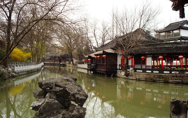 石高約丈余,頗具瘦、皺、透、漏、秀五個(gè)特點(diǎn)。 該園分東西兩個(gè)部分,大門在東半部,大門對面有照壁,照壁 前是一塊太平天國起義浮雕。大門上懸一大匾書“金陵第一園”,字系趙樸初所題。進(jìn)門正中是一尊洪秀全半身銅像,院中兩邊排列 著當(dāng)年太平天國用過的大炮20門。二進(jìn)大廳上有郭沫若題寫的“太平天國歷史陳列”匾額,主要陳列文物有天父上帝玉壟、天王皇袍、 忠王金冠、大旗、寶劍、石槽等300 多件,總陳列面積約1200平方米。該館現(xiàn)已收集到太平天國文物1600余件,其中有42件一級文物,這是東半部。西半部是一座典型的江南園林,園內(nèi)古建筑有一覽閣、花籃廳、 致爽軒、迎翠軒及曲折環(huán)繞的回廊,這些建筑和回廊把整個(gè)瞻園分 成5 個(gè)小庭院和一個(gè)主園。 穿過玉蘭院、海棠院,便來到精巧的花監(jiān)廳。這里一步一景,涉足成趣。主建筑是靜妙堂,靜妙堂為鴛鴦廳,它一面建在水上,宛若水榭。堂前廊檐下有一排靠椅,供游人休息。同時(shí)可以仔細(xì)欣賞榭前假山,聆聽山上瀉下的三疊瀑布的聲響,凝視山中石洞和山下一泓池水,這時(shí)你會很自然地走下廊檐,沿著假山小徑及臨波而建的石路走一趟,爬上山巔,看看曲水的源頭,俯視全園景色,倍覺心曠神怡,無比愉悅。 靜妙堂把全園分成兩個(gè)空間,南部視野近,北部視野遠(yuǎn),北靜而南喧,南北各建一假山和水池,以溪水相連,有聚有分,水居山前,隔水望山,相映成趣。 瞻園位于南京市瞻園路208 號,又稱太平天國歷史博物館。從夫子廟向西步行七八分鐘即到。