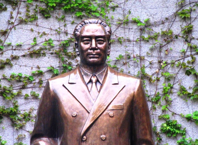 1990年7月1日,喬石為周恩來銅像落成揭幕,并參觀中共代表團(tuán)梅園新村紀(jì)念館。