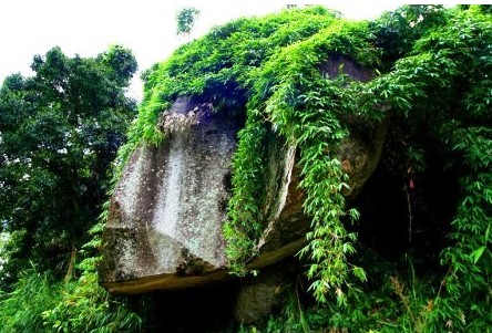 在黎母山頂,高丈余。大二丈,中間有東坡手書詩一首。近此壁裂開二幅云。(《定安縣志》)
