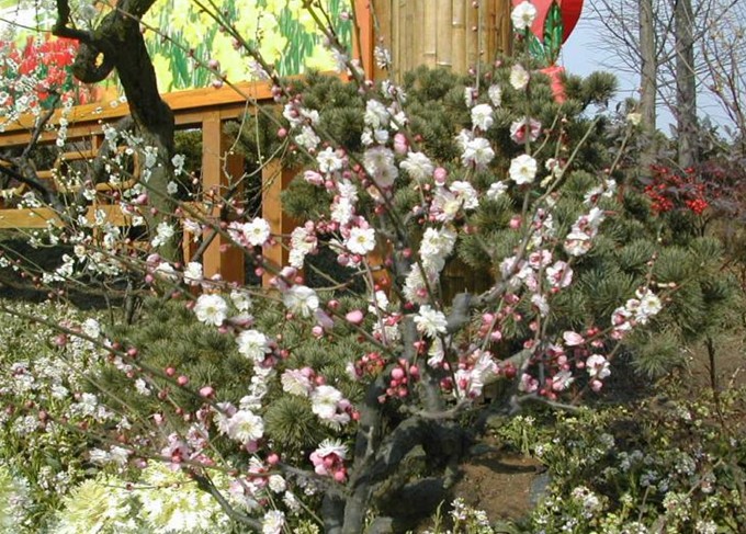 著名的有素白潔凈的玉蝶梅,有花如碧玉萼如翡翠的綠萼梅,有紅顏淡妝的宮粉梅,有胭脂滴滴的朱砂梅,有濃艷如墨的墨梅,有枝桿盤曲矯若游龍的龍游梅等。還有造型幽雅、虬枝倒懸、枯樹老干、疏影橫斜的梅樁藝術(shù)盆景。