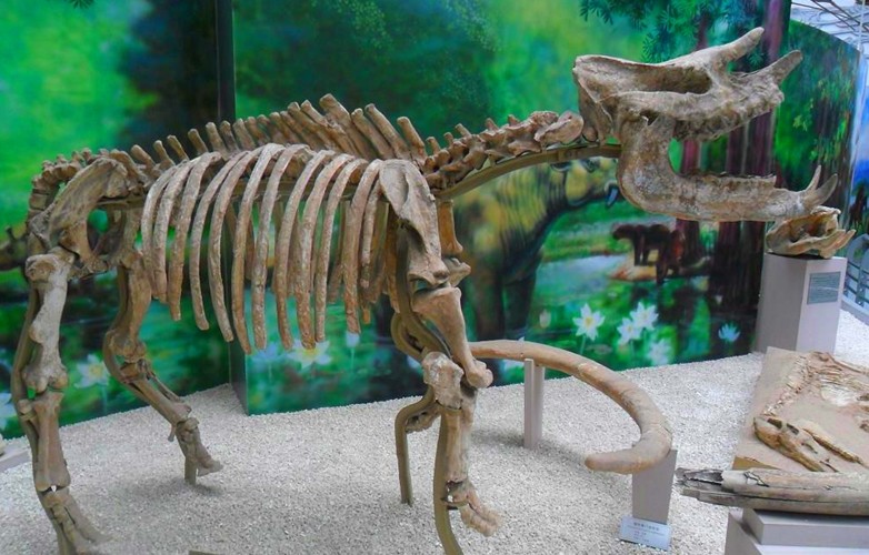 黑龍江滿州龍是一類大型的鴨嘴龍,體長10.50m,體高6.1m,嘴巴象鴨子是其最大的特征。它屬于素食龍,牙齒小而多,前肢細小而后肢粗壯。該恐龍骨架產(chǎn)于黑龍江省嘉陰縣,生活在6500萬年前的白堊紀末期。因其含有50%的真化石,在世界恐龍化石中占有重要地位,構成了地大逸夫博物館的顯著標志。
