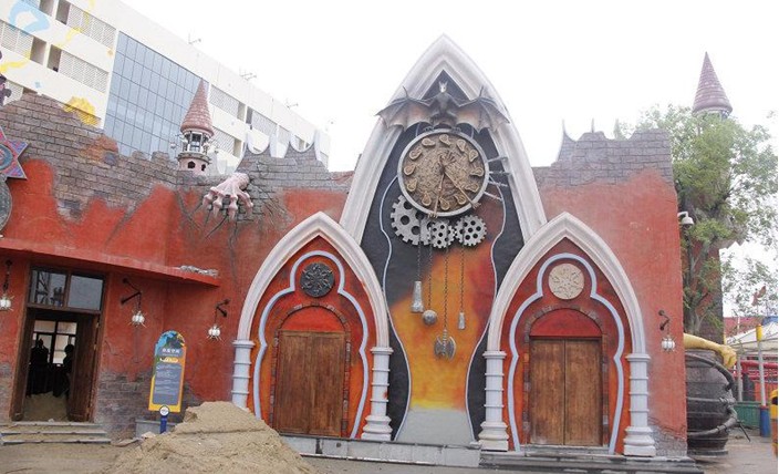 4D影院:屬于武漢歡樂谷颶風(fēng)灣區(qū),占地面積946平米,局部?jī)蓪?,高度?4米。