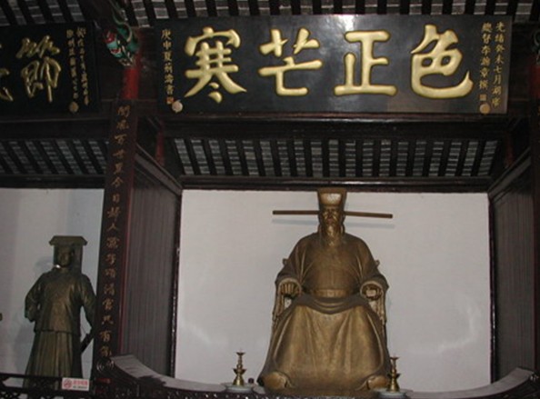 元代詩人王惲賦詩贊日:“拂拭殘碑覽德輝,千年包范見留題。驚烏繞匝中庭柏,猶畏霜威不敢棲。”頃揚(yáng)包公和范件淹的盛德和威名光耀千古,把貪宮污吏比作可惡的烏鴉,即使千百年后,見其碑猶如見二公其人,仍諒懼萬分,不敢近前逗留??梢?ldquo;包青天”名不虛傳;東西展殿則以圖文并茂的形式,展示包公的傳說軼聞,歷史故事,特別是東殿的群組蠟像《鍘美案》與真人大小一樣,色彩鮮明、形神俱備、毫發(fā)俱現(xiàn)、栩栩 如生,倍受中外游客贊揚(yáng)。
