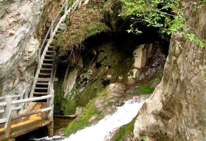 水簾仙宮高20米,寬10米,深80米,這里是典型的容巖結(jié)構(gòu)再輔以造物主的匠心獨(dú)運(yùn),雕琢出二佛守宮、玉獅望月、倒掛蓮花、金龍盤柱、雙佛打坐、鳳凰展翅、獼猴登山等多處奇妙無比的洞穴景觀。