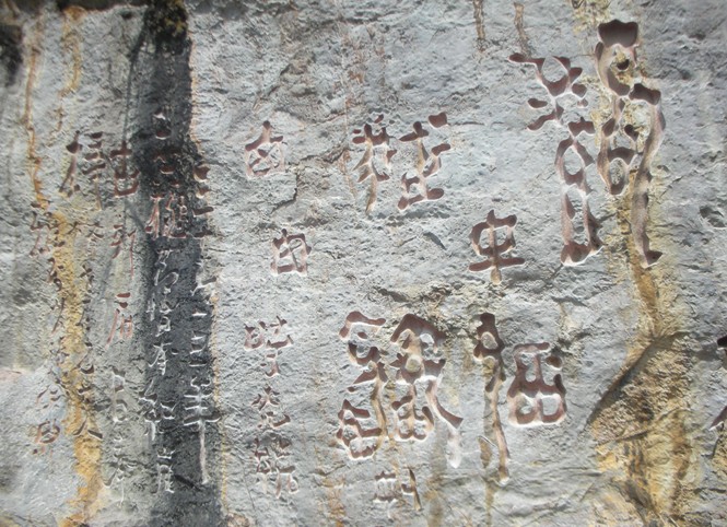 從此,天書的面目即為翟鴻錫本所示,那些附庸風(fēng)雅的官僚成為了千夫唾棄的罪人。盡管如此,清未還是有位叫徐印川的貴州提督,敢冒天下之大不韙,在天書崖面上,手寫了一個草書的"虎"字,以求同天書千古不朽。這位徐提督實乃一位討厭的古跡破壞者,在筑地名勝風(fēng)景區(qū),仙人洞的山壁上,還有其題詠景物的石刻詩。(有專家認為草書"虎"字,乃周達武所為,權(quán)當(dāng)一說吧。)