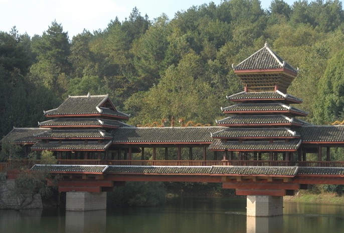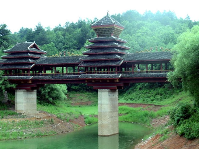 花橋是侗鄉(xiāng)跨越溪河、避雨納涼、點綴風(fēng)景,集多種用途于一體的橋梁。它的起源還流傳著許多優(yōu)美的神話傳說。
