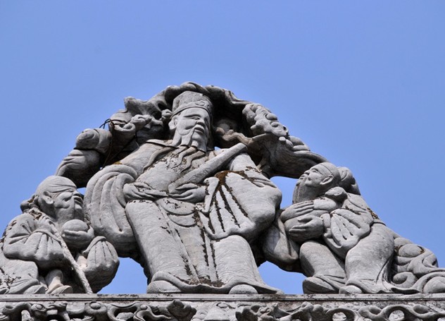大拜殿,是會(huì)館的主體建筑,由大殿和拜殿兩部分組成,長(zhǎng)40米,寬22米,高23.14米。殿前兩側(cè)立兩塊石室式單據(jù)歇山頂式石雕,版權(quán)所有山東聊城聊之旅國(guó)際旅行社有限公司,轉(zhuǎn)載必究!高2米,寬1米,單檐硬山頂,左側(cè)刻:“十八學(xué)士登瀛洲”。圖中有杜如晦、房玄齡、于志宇等不畏艱險(xiǎn),騎馬沿崎嶇小路登上為天下人慕向的瀛洲。