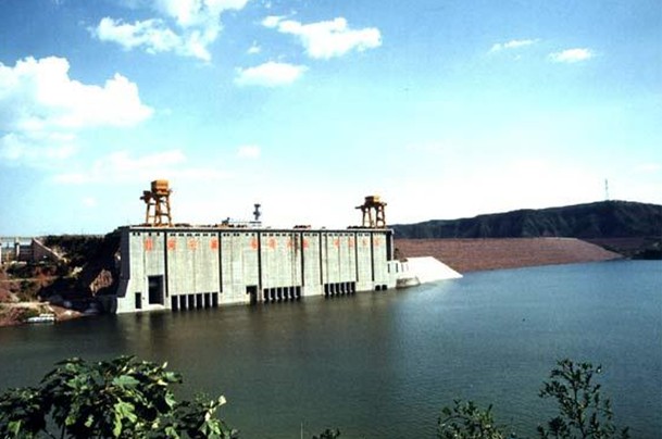 大壩主壩為混凝土重力壩,壩長713.2米,最大壩高106米;副壩為鋼筋混凝土心墻,長144米,最大壩高24米;主、副壩總長857.2米。電站廠房為壩后式,全長223.88米,寬26.2米,可安裝8臺發(fā)電機(jī)組,現(xiàn)有7臺機(jī)組,發(fā)電量41萬千瓦,為低水頭徑流發(fā)電。