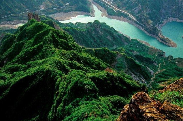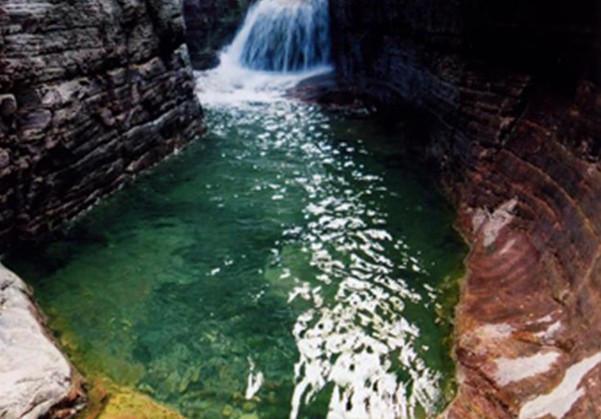 位于太行山南麓。河南省輝縣市上八里境內(nèi),面積約34平方公里,是一座25億年前山崩地裂形成的地質(zhì)遺跡奇觀,景區(qū)內(nèi)以一線天,柱狀峰林,天生橋,大絕壁為主體,溝交錯(cuò),崖臺(tái)環(huán)抱,飛瀑流泉和清溪幽潭相互輝映。