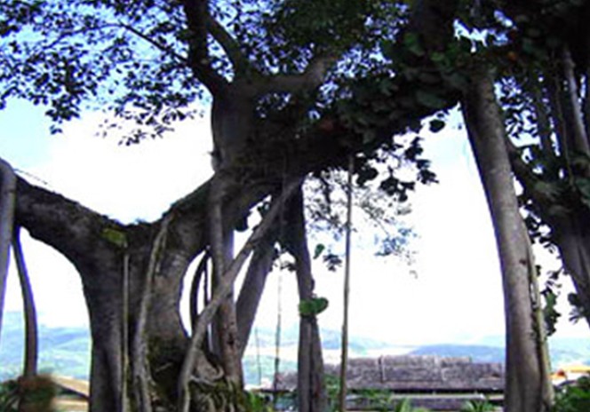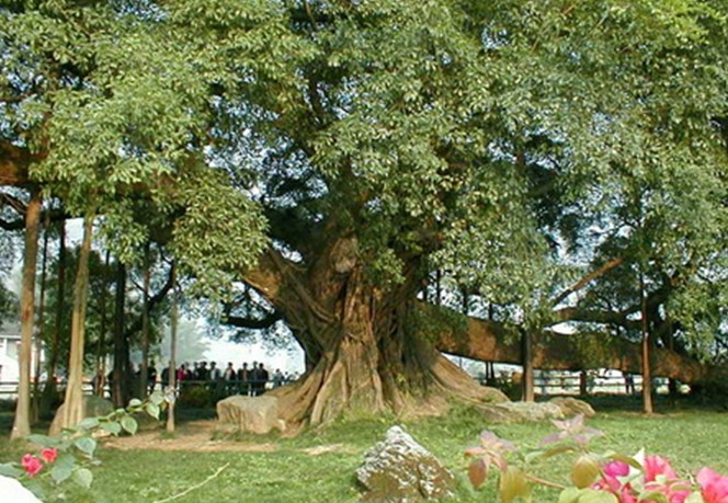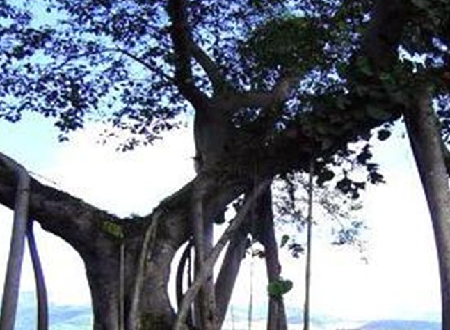 勐養(yǎng)象形樹(shù)距離景洪縣勐養(yǎng)鎮(zhèn)200多米,是一株奇特的百年古榕,樹(shù)高20多米,冠幅寬30多米,兩根粗大的寄生根,扎于地下,氣生根形似大象,形成一座汽車也開(kāi)得過(guò)去的圓形大拱門(mén),主干根部長(zhǎng)出的一大片盤(pán)根,就像一座天然假山。