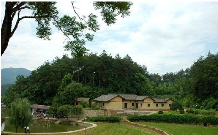 故居前有一口畝地左右的池塘,塘中有荷花,故又叫荷花塘,與之相毗鄰的是南岸塘。荷花塘與南岸塘綠水瑩瑩,風過處,蕩起縷縷漣漪。放眼青山,綠水、蒼松和翠竹把這棟普通農(nóng)舍映襯得生氣盎然。