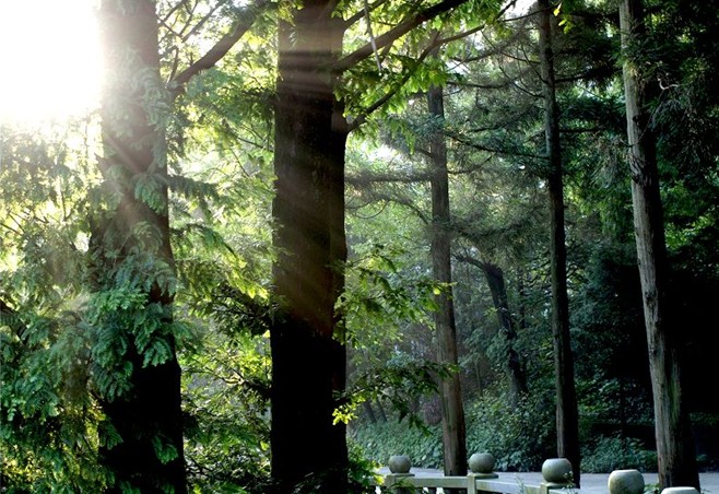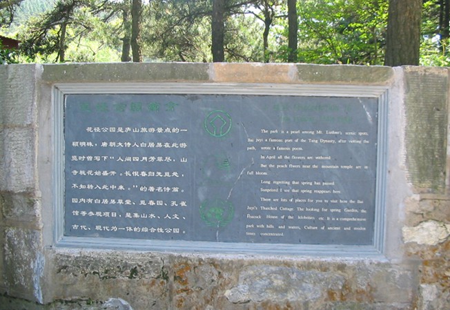 花徑公園位于牯嶺街西南2公里處的如琴湖畔。有公路抵達(dá),沿大林路步行,順路可見冰川遺跡——冰桌巨石,又叫飛來石?;◤较鄠魇翘拼娙税拙右自佋姟洞罅炙绿一ā返牡胤?。白居易被貶任江洲(九江)司馬時(shí),于公元816年登廬山游覽。時(shí)值暮春,山下桃花已落而此處卻桃花盛開,白居易有感吟詩一首:“人間四月芳菲盡,山寺桃花始盛開。長恨春歸無覓處?!?/p>