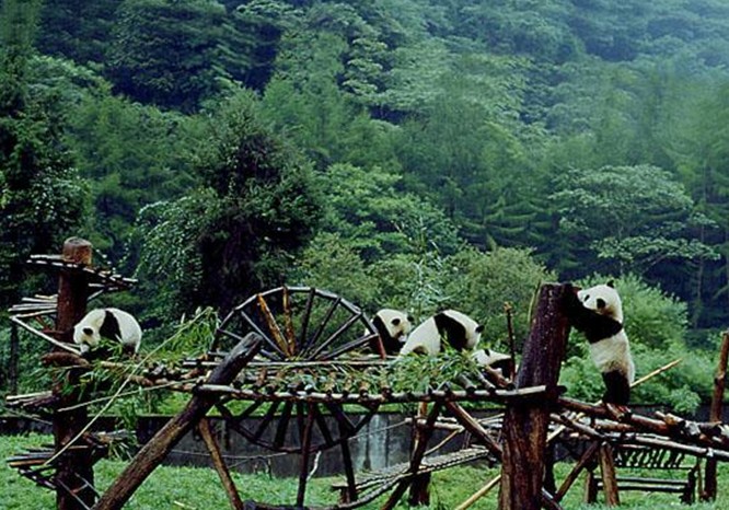 臥龍國(guó)家自然保護(hù)區(qū)位于中國(guó)四川省汶川縣西南部,邛崍山脈東翼。最高峰為西南的四姑娘山,海拔6250米,附近高于5000米的山峰有101座。群山環(huán)抱,地勢(shì)從西南向東北傾斜 ,溪流眾多。年均溫8.9℃,最高溫度29.2℃,最低溫度-8.5℃,年降水量931毫米。原始森林茂密,處四川盆地與青藏高原過渡帶,從亞熱帶到溫帶、寒帶的生物均有分布。海拔1600米以下為常綠闊葉林;1600~2000米為常綠落葉闊葉混交林帶,常綠樹有螢青岡、印葉釣樟,落葉樹有水青樹、山毛櫸、槭等;2000~2600米為針闊混交林,以鐵杉為主,其次為垂枝云杉、四川紅杉、槭、椴等;2600~3600米為亞高山針葉林帶,以岷江冷杉為主,林下有大面積箭竹;3500米以上為高山草甸和灌叢。不同類型的植被為多種動(dòng)物提供了棲息場(chǎng)所。1963年建立自然保護(hù)區(qū)。面積2萬公頃 。1980年與世界野生動(dòng)物基金會(huì)合作在臥龍建立中國(guó)保護(hù)大熊貓研究中心。1983年加入國(guó)際“人與生物圈計(jì)劃”。主要保護(hù)對(duì)象是大熊貓等珍稀動(dòng)物及森林生態(tài)系統(tǒng)。